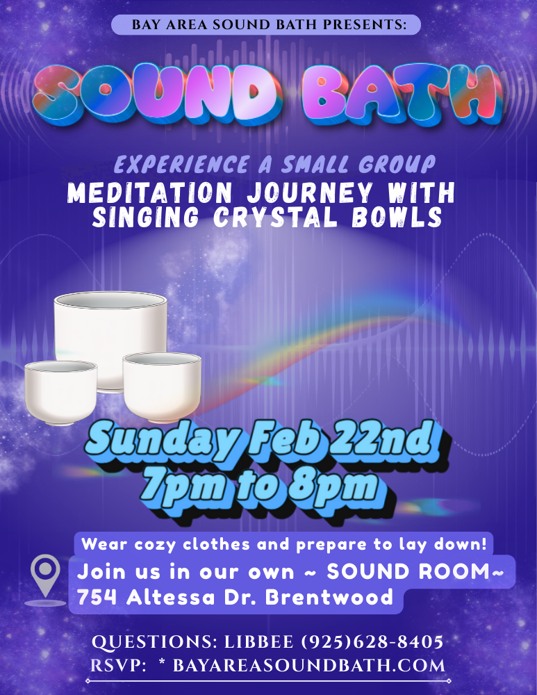 Schedule your in-person session with Libbee: (925)628-8405 bayareasoundbath@gmail.com